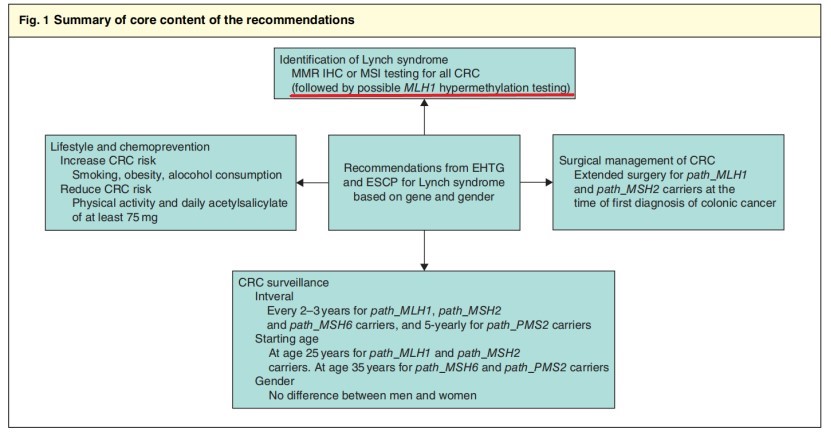 TheEuropean guidelines for the treatment of Lynch syndrome by EHTG and ESCP: Thethird edition of the Mallorca Guidelines based on genes and gender in 2020points out that both MMR or MSI tests require MLH1 gene methylation results asa supplement.