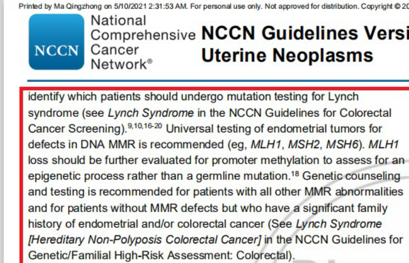 TheNCCN 2021 V1 version recommends the molecular typing testing process forendometrial cancer