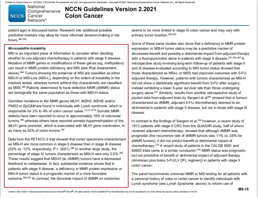 2) The analysis ofmicrosatellite instability (MSI), caused by MMR defects, is based on changes inthe length of repetitive DNA elements in tumor tissues;