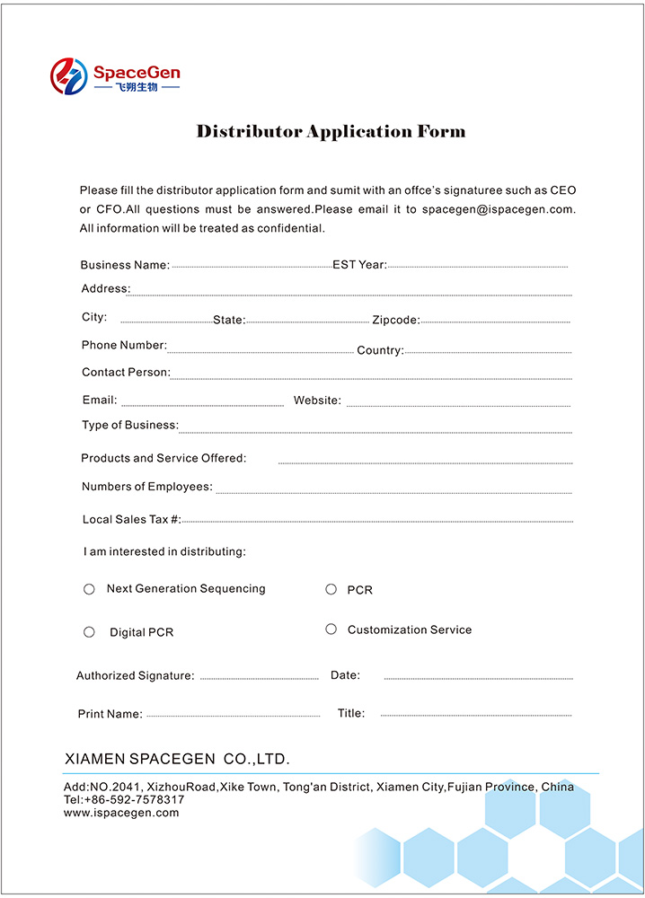 Spacegen is now open for global distributor application.If you are interested in  becoming our distributor, please download the following DISTRIBUTOR APPLICATION FORM  ,complete the form and email it to spacegen@ispacegen.com.