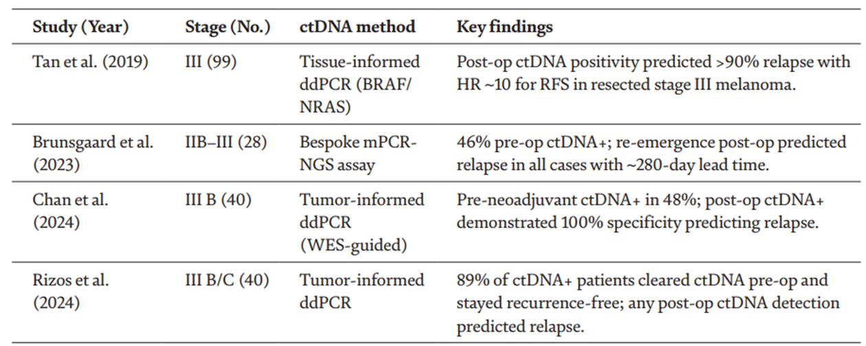 表1.ctDNA在可切除黑色素瘤中的臨床研究